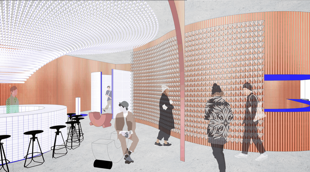 Alongside the concert venues, we were asked to design a modular, sustainable festival space – an adaptable assemble-disassemble structure that could be rapidly deployed, reconfigured, and reused across events, maintaining a coherent spatial and brand identity, delivering a consistent experiential quality, and creating a striking presence at night.